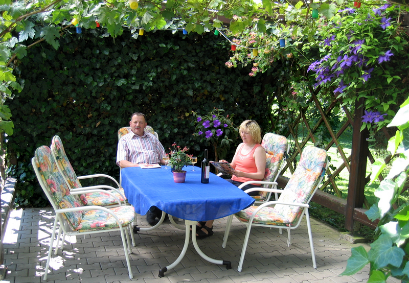 Hinter dem Haus befindet sich die Gästepergola. Dort können Sie ein paar gemütliche und erholsame Stunden verbringen und bei einem Glas Wein entspannen. Ebenfalls hinter dem Haus befindet sich die Liegewiese. Gepolsterte Garten- und Liegestühle stehen dort jederzeit für Sie zur Verfügung.